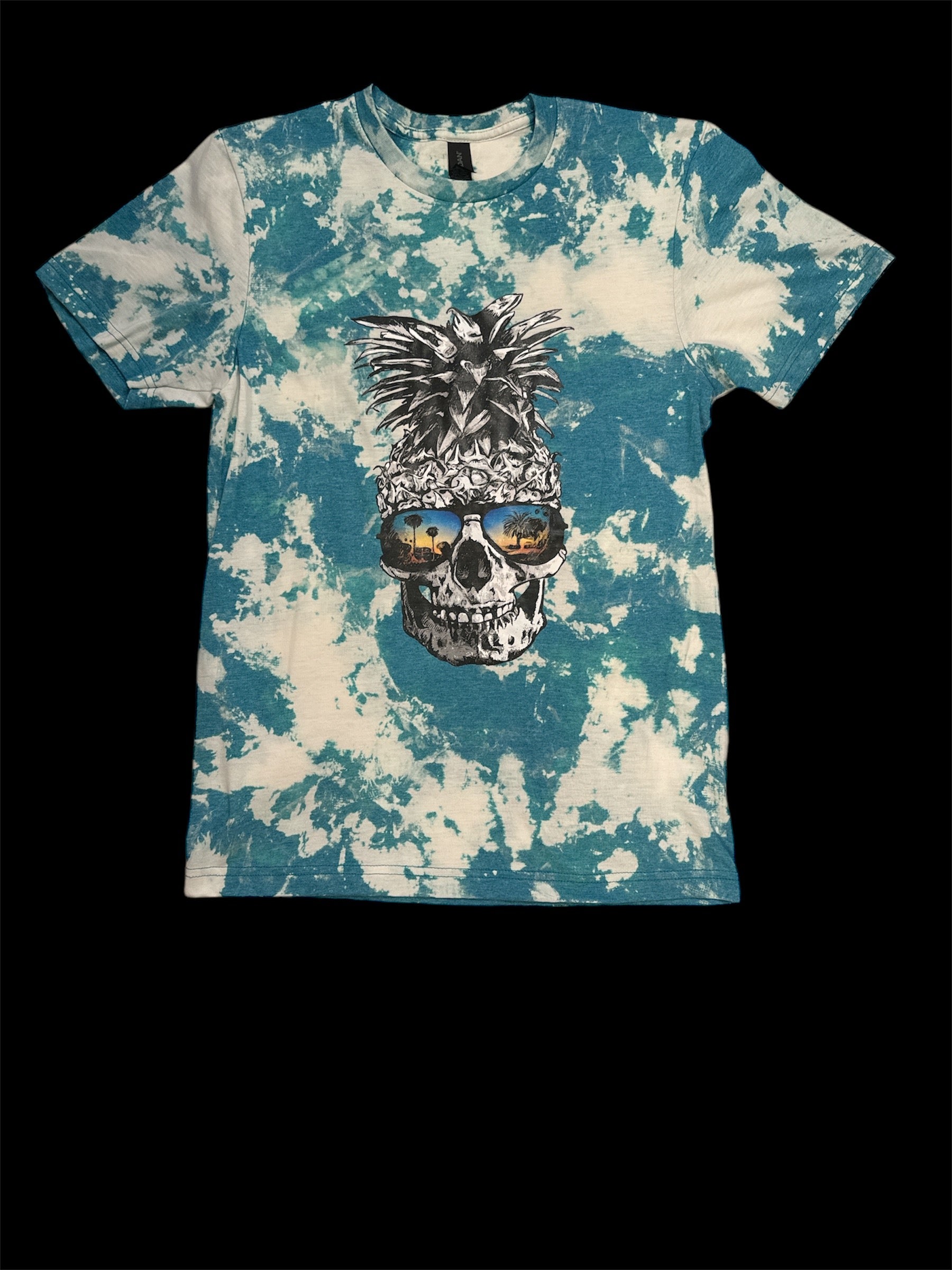 Reverse Dye soft style short sleeve t-shirt with skull pineapple print.